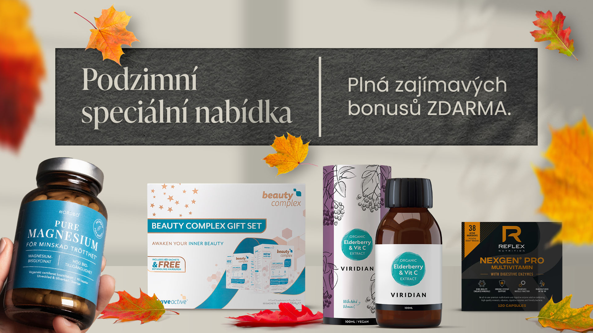 Poslední aktuality Podzim v klidu a pohodě – díky silné imunitě Využijte podzimní speciální nabídku! Nordbo Optic Blue – pro podporu očí a zraku Jak zvládnout podzimní únavu a náladovost Novinky Nutriworx Byli jsme na Hradeckém půl/maratonu Menopause Complex nyní i v balení 60 kapslí Women's Wellbeing - probiotika Optibac pro ženy Focus Complex - soustředění a duševní výkon Přejít na aktuality